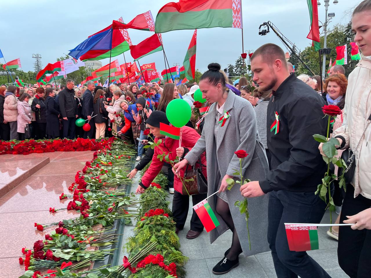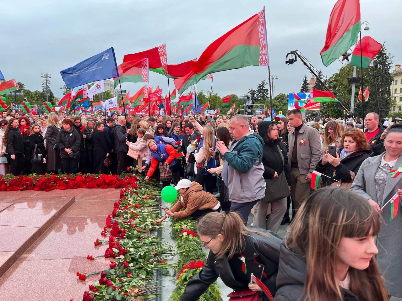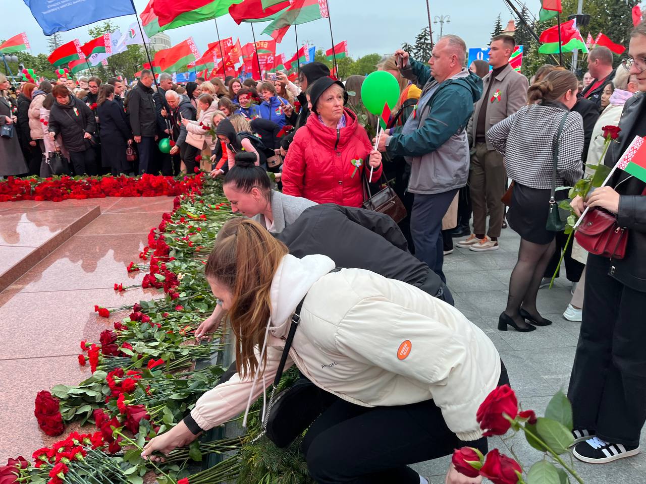 Работнікі ААТ "ММЗ імя С.І. Вавілава – кіруючая кампанія холдынгу "БелОМО" прынялі ўдзел у цырымоніі ўскладання вянкоў і кветак да манумента Перамогі ў рамках патрыятычнай акцыі "Беларусь памятае" 9 мая 2024г.