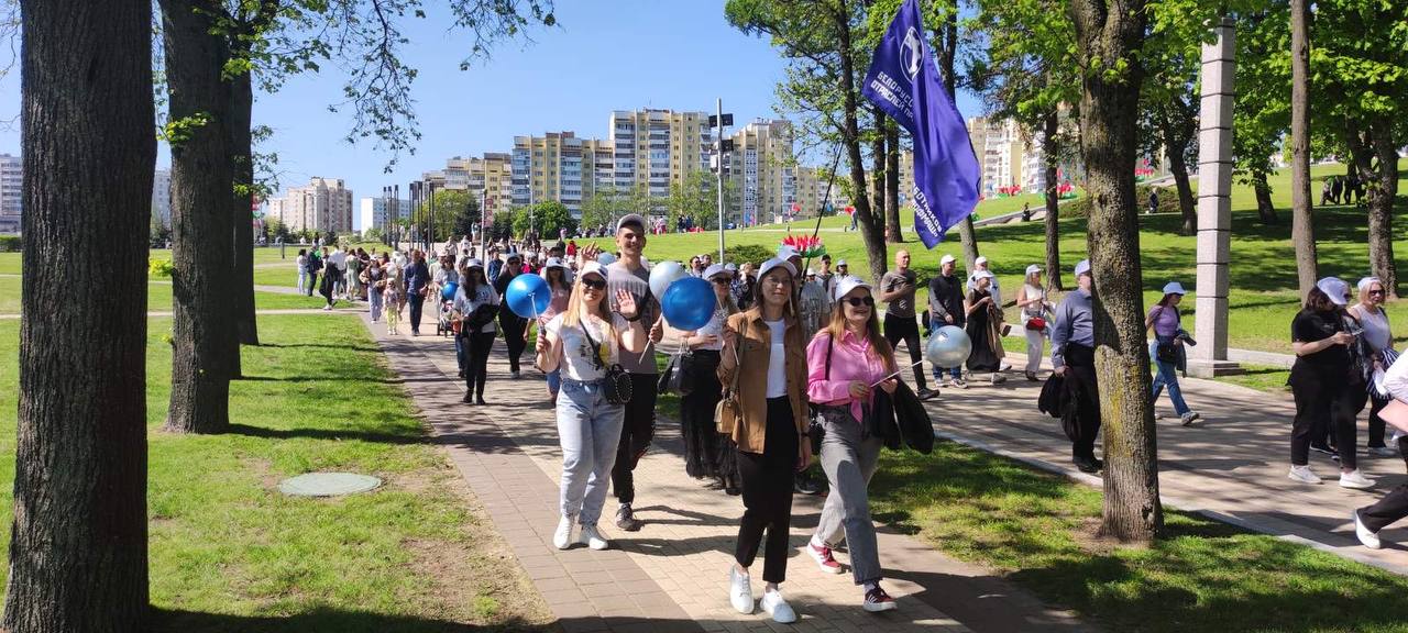 Дружнымі радамі нашы калегі ідуць у парк Перамогі на ўрачысты мітынг, прысвечаны Святу Працы.