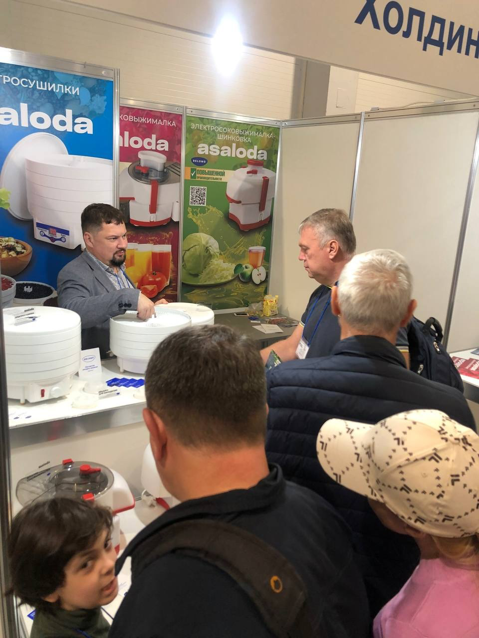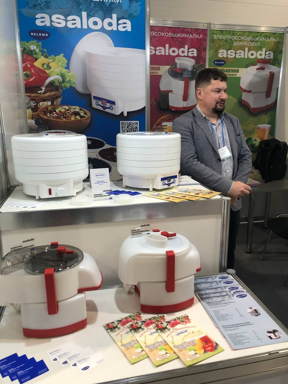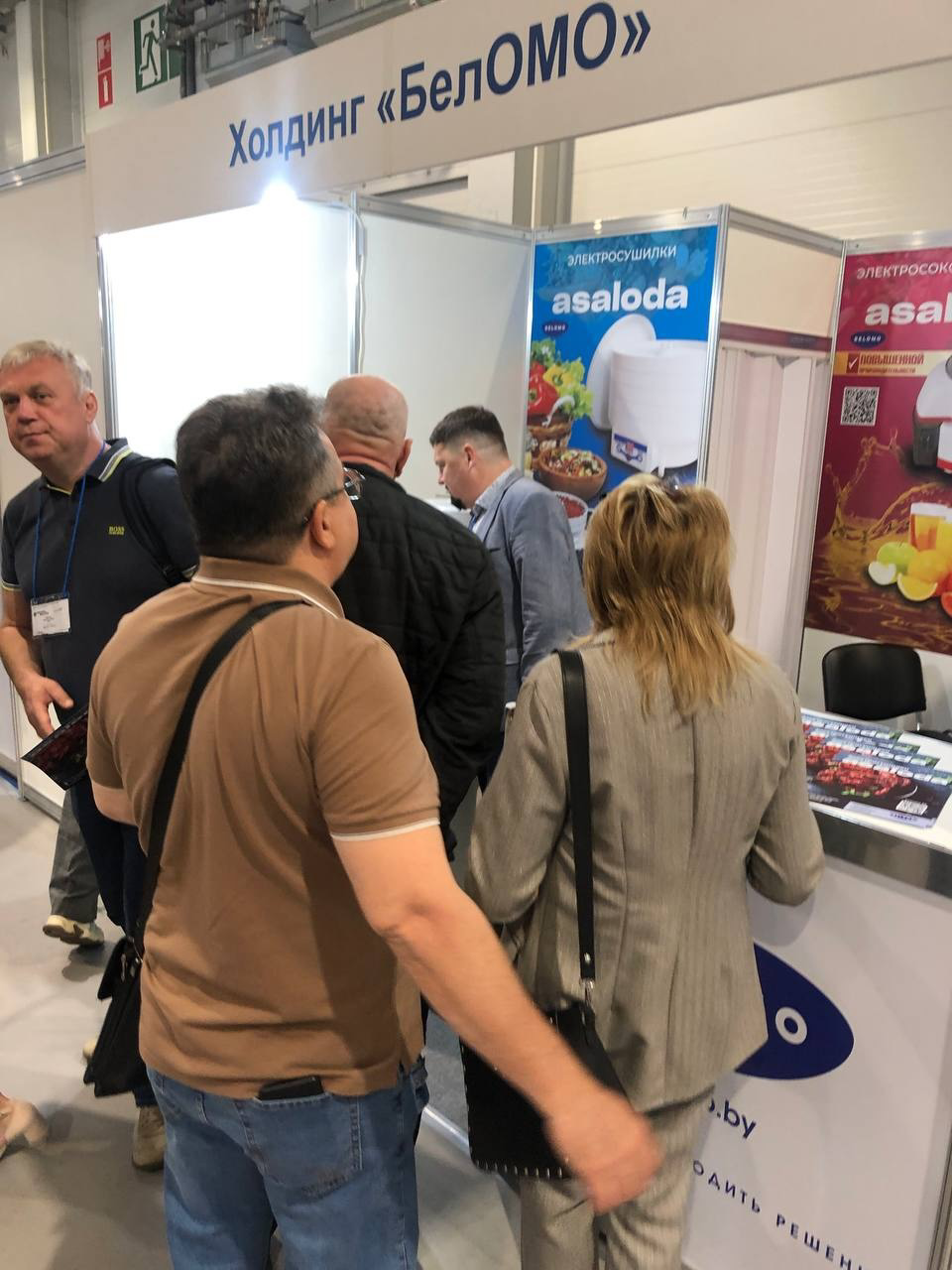 С 18 по 20 апреля 2023 года ОАО «ММЗ имени С.И. Вавилова – управляющая компания холдинга «БелОМО» принимает участие в выставке «FoodTech Краснодар 2023». На стенде представлена продукция бренда «asaloda»: электросушилки с электронным и механическим управлением, электросоковыжималка и электросоковыжималка-шинковка.