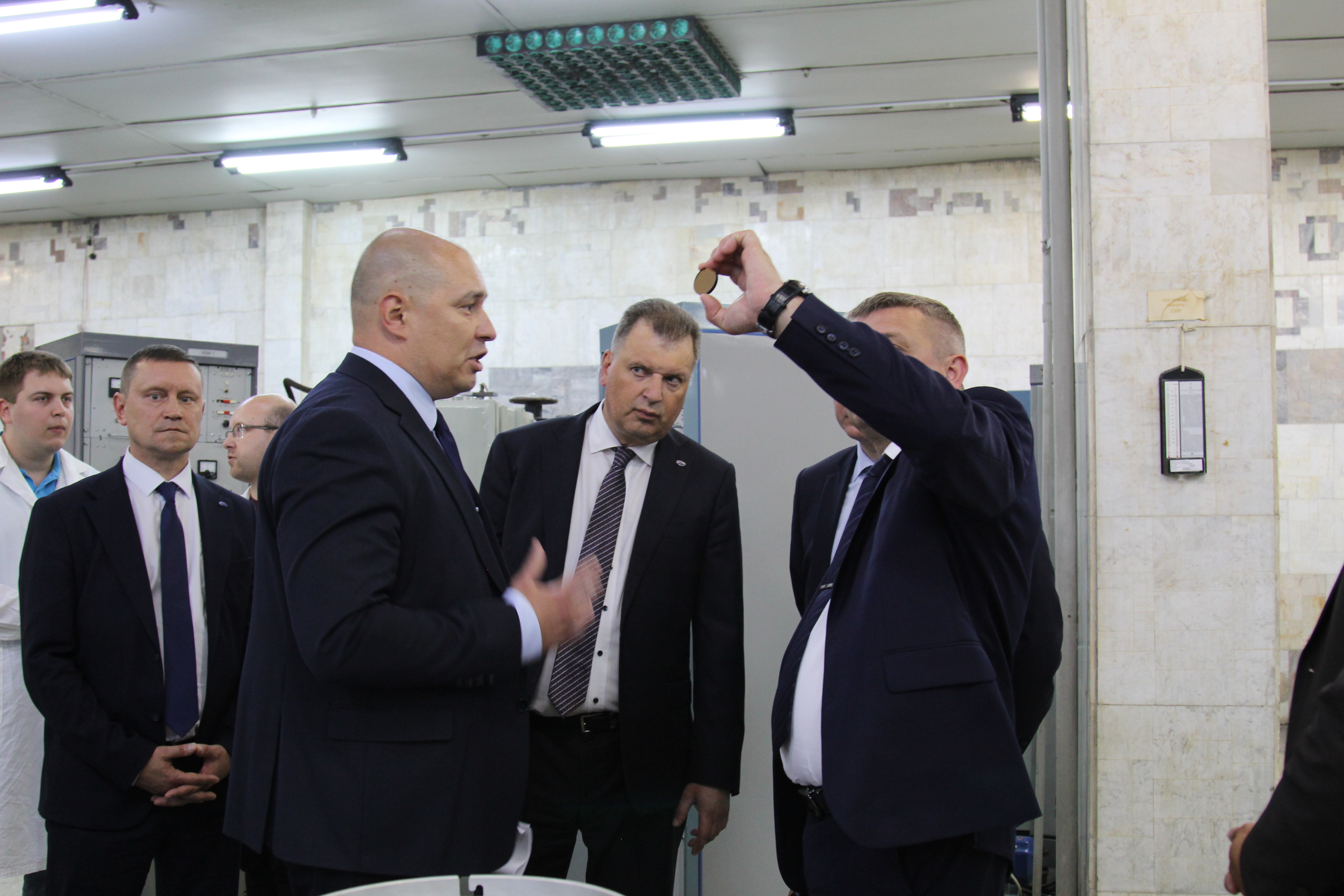 Новый министр промышленности Андрей Кузнецов и заместитель министра промышленности Алексей Козлов посетили производство холдинга «БелОМО».