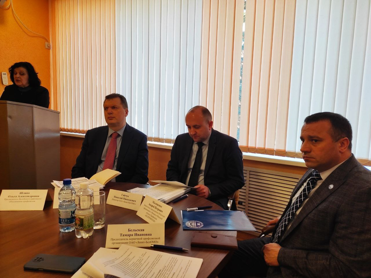 На ОАО «Зенит-БелОМО» состоялась отчётная профсоюзная конференция. В работе форума приняли участие Малащенко Андрей Петрович- заместитель председателя Областной организации г.Минска и Минской области Профсоюза «Белпрофмаш», Мороз Александр Иванович- генеральный директор ОАО «Минский механический завод им. С.И. Вавилова»-управляющая компания холдинга «БелОМО», Беленко Александр Иванович- заместитель Генерального директора- директор по производству ОАО «Минский механический завод им. С.И.Вавилова»- управляющая компания холдинга «БЕЛОМО», Свядыш Алексей Николаевич- председатель профкома ОАО «Минский механический завод им.С.И.Вавилова» - управляющая компания холдинга «БЕЛОМО», Шляпо Ольга Александровна- председатель Вилейского районного объединения профсоюзов.