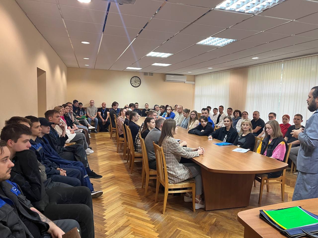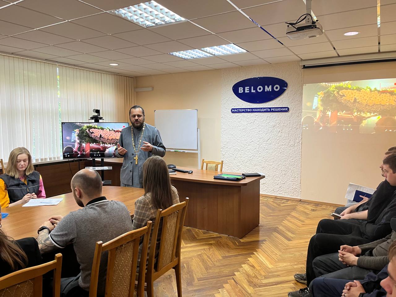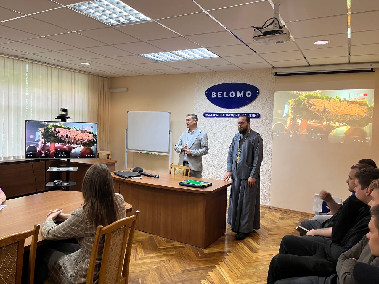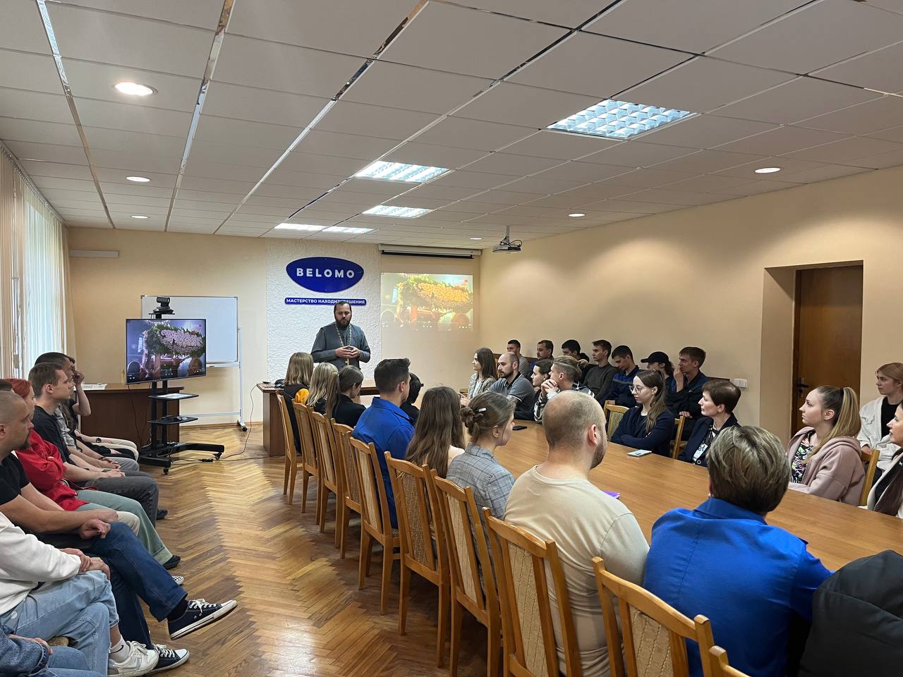 В рамках единого дня информирования сегодня прошла встреча молодежи ОАО «ММЗ имени С.И.Вавилова - управляющая компания холдинга «БелОМО» с настоятелем прихода в честь иконы Божией Матери «Скоропослушница» в г. Минске иереем Виталием Миничем по теме «Семейные ценности».